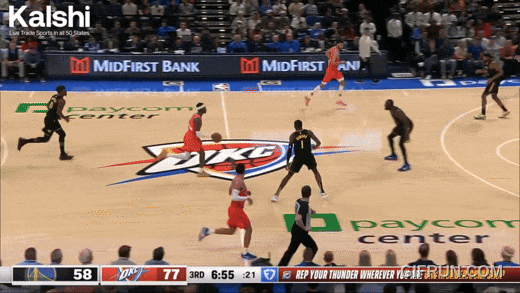 下一回合,威少助攻尤班克斯。约基奇看了看他,回了一个三分球——刚才三不沾,这次空心。尤班克斯摇头。