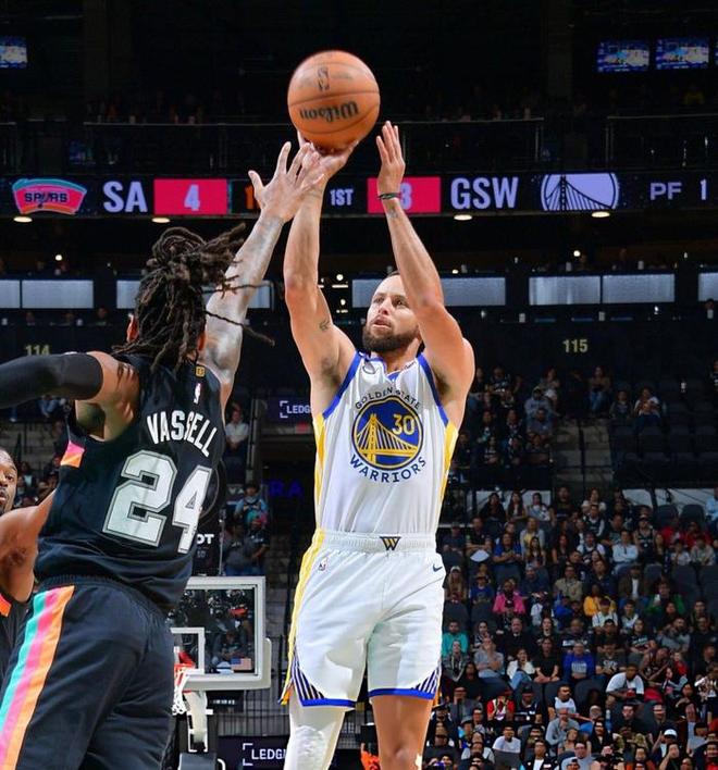另一边的马刺主场,勇士开局同样被动。首节马刺防守锁死勇士,全队仅得14分,分差最大时被拉开到16分,客场球迷的手心捏出了汗。可库里的第三节成了转折点:刚开场干拔三分命中,接着抢断快攻连得4分反超,马刺双人夹击却拦不住他的传球,穆迪和巴特勒的三分接连落袋。最后3分钟库里彻底接管比赛,连续命中4球包括2记压哨三分,单节狂砍22分,带领勇士打出43-28的攻击波完成逆转。