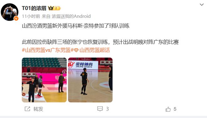 据媒体人爆料,张宁已经恢复了训练,预计将出战今晚对阵广东队的比赛,并且山西新签下的外援马科斯·奈特也参加了球队训练,如果奈特能在赛前完成注册的话,那么他也将出战和广东队的大战。